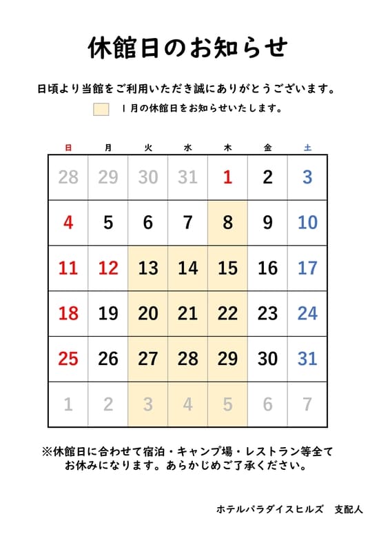 年始イベント当館では三が日に振舞い甘酒と 振舞い餅つきを開催いたします! お気軽にお立ち寄りくださいませ。 |